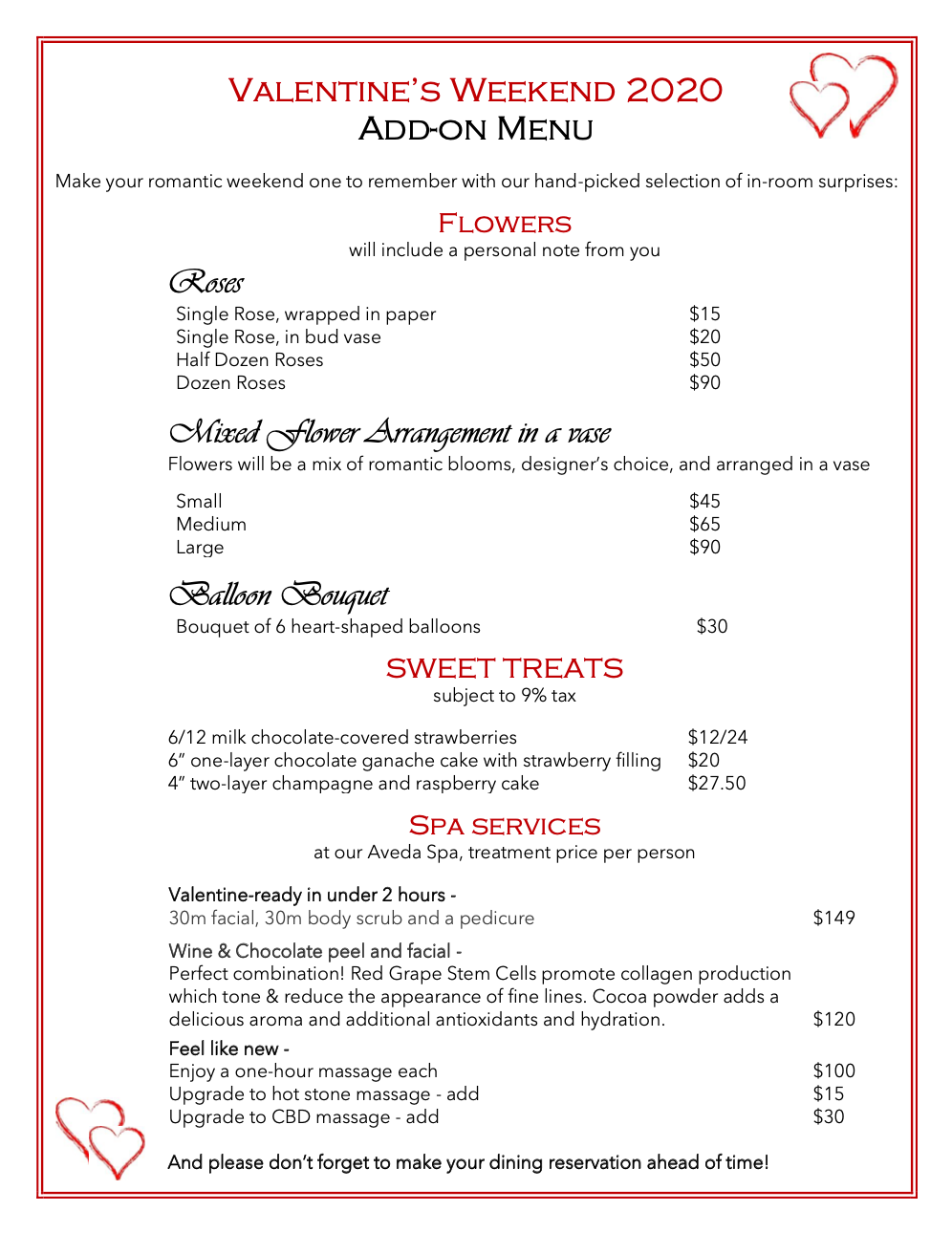 2020 Valentine’s Day Add-ons | Christmas Farm Inn & Spa